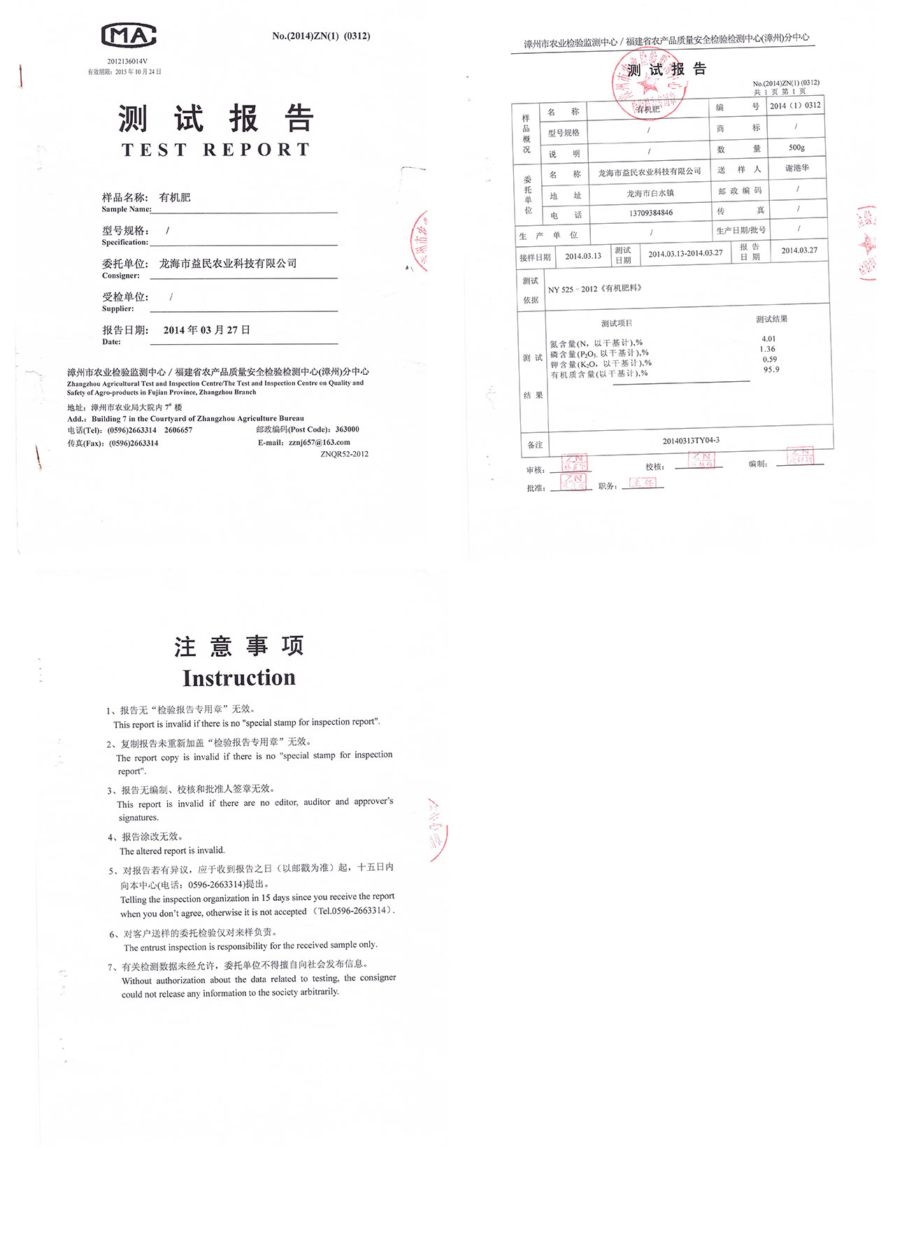 漳州市農(nóng)業(yè)檢驗(yàn)檢測中心測試報(bào)告 有機(jī)肥1
